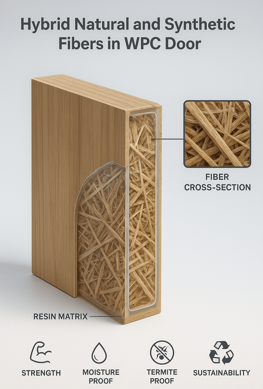 Campuran serat alam dan sintetis diaduk secara merata dalam resin termoplastik, menciptakan jaringan serat yang saling menguatkan. Hasilnya adalah matriks homogen dengan rasio kekuatan terhadap berat (strength-to-weight ratio) yang jauh lebih tinggi dibanding WPC konvensional.
