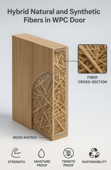 Teknologi WPC kini memasuki fase baru dengan menggabungkan serat alam dan serat sintetik dalam satu struktur material. Kombinasi cerdas ini menghasilkan komposit hybrid yang lebih kuat, lebih stabil, dan lebih tahan terhadap kelembapan, serangan rayap, serta perubahan suhu ekstrem. Serat alami memberikan karakter organik dan kekuatan tarik, sementara serat sintetik meningkatkan ketahanan dan konsistensi performa. Hasilnya adalah pintu WPC generasi terbaru—lebih tahan lama, ramah lingkungan, dan ideal untuk kebutuhan bangunan modern terutama di iklim tropis.