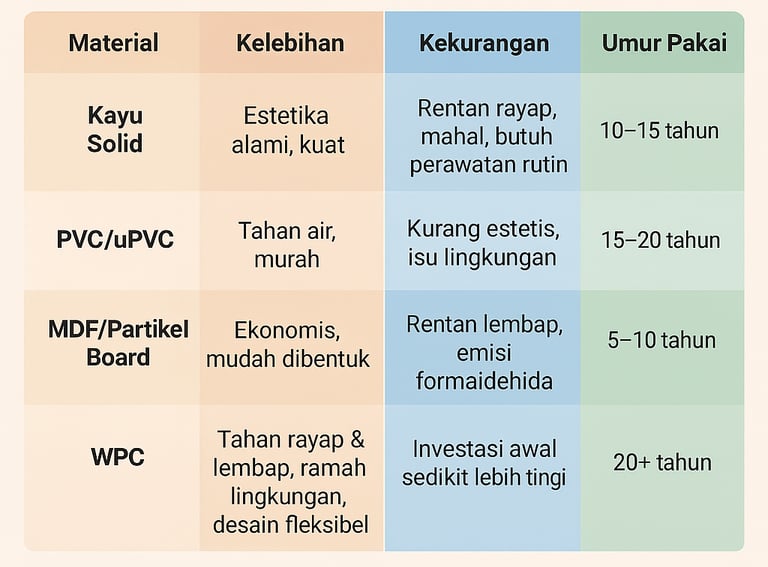 Selain itu, adopsi standar SNI dan ASTM untuk pengujian kualitas WPC menjadikan material ini semakin dipercaya kontraktor dan pengembang besar.